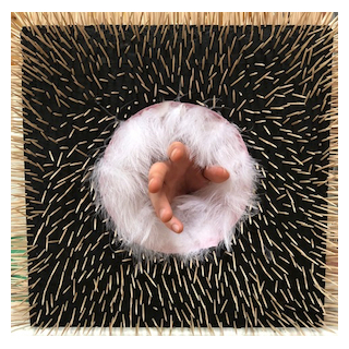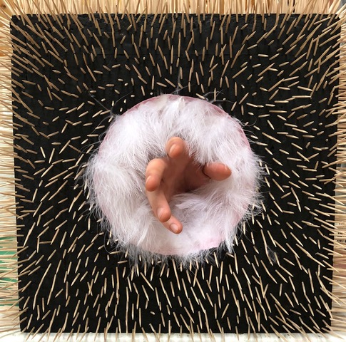Big Softie (detail) styrofoam, acrylic paint, feathers and toothpicks, 18" x 18" x 8", 2018