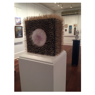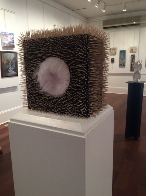Big Softie styrofoam, acrylic paint, feathers and toothpicks, 18" x 18" x 8", 2018