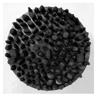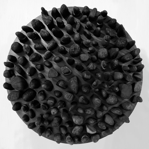 Huddle charred driftwood from last year's beach fires, 36” round, 2024
