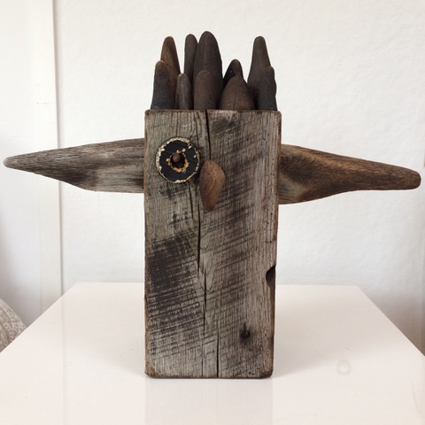 Owl beach flotsam, 18" x 18" x 6", 2019