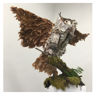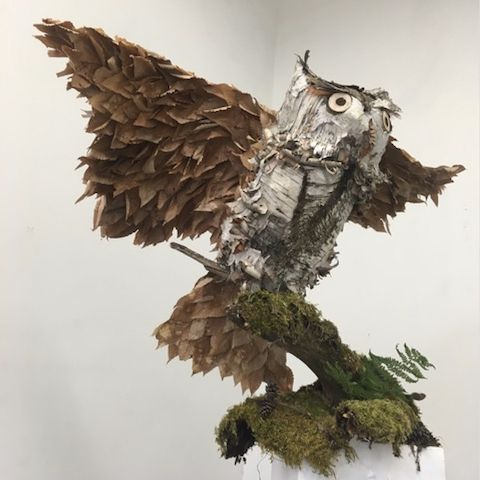 Shaggy Owl found wire and forest objects, 4' x 4' x 4', 2019